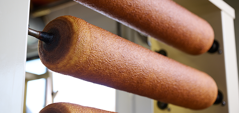 私たちは、業者の方々とも力を合わせ、何度も試作を重ねながら、このバウムクーヘンを完成させました。